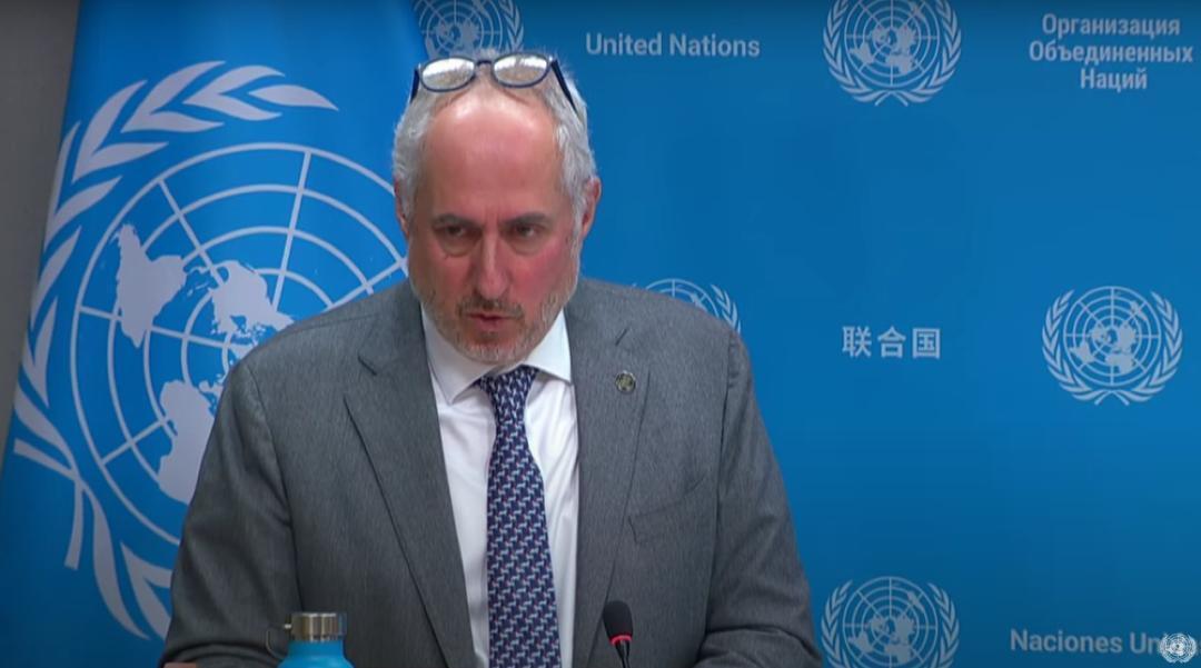 联合国秘书长古特雷斯的发言人迪雅里克21日在例行发布会上接受记者提问。图源:联合国官网视频截图